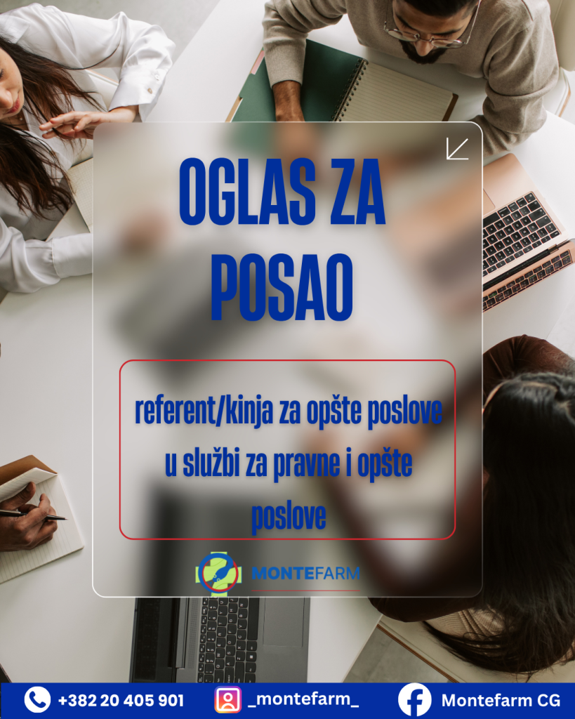 Oglas za radno mjesto referent/kinja za opšte poslove u službi za pravne i opšte poslove