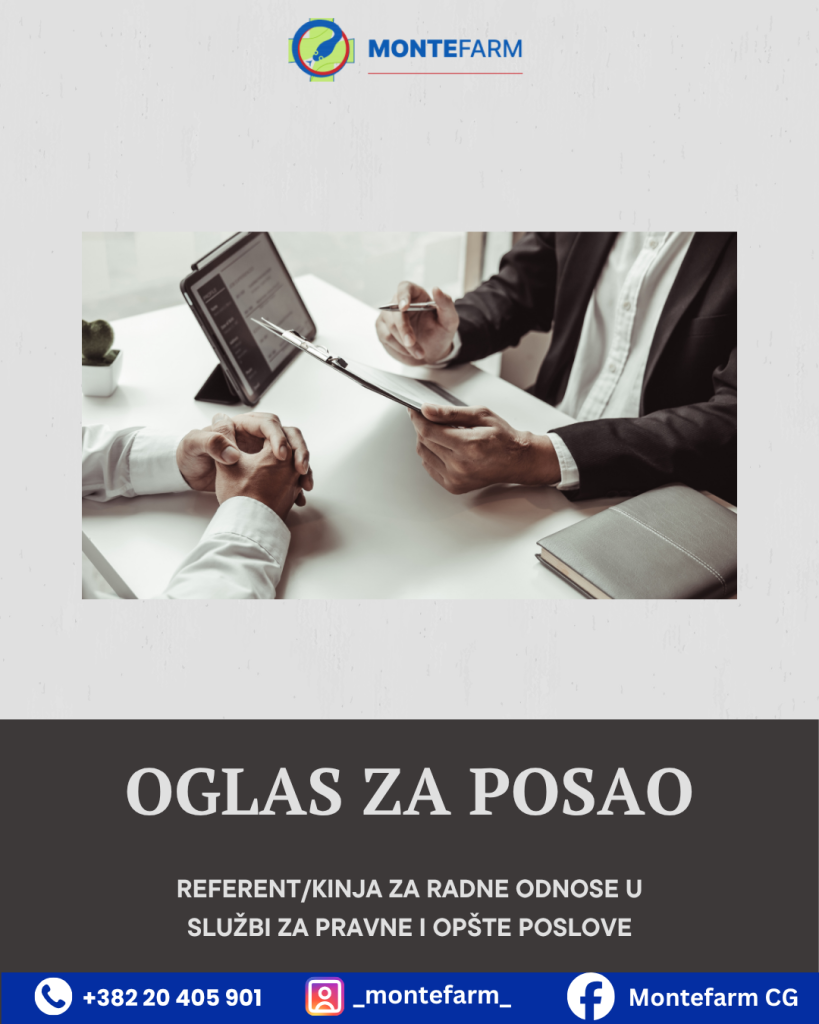 Oglas za radno mjesto referent/kinja za radne odnose u službi za pravne i opšte poslove