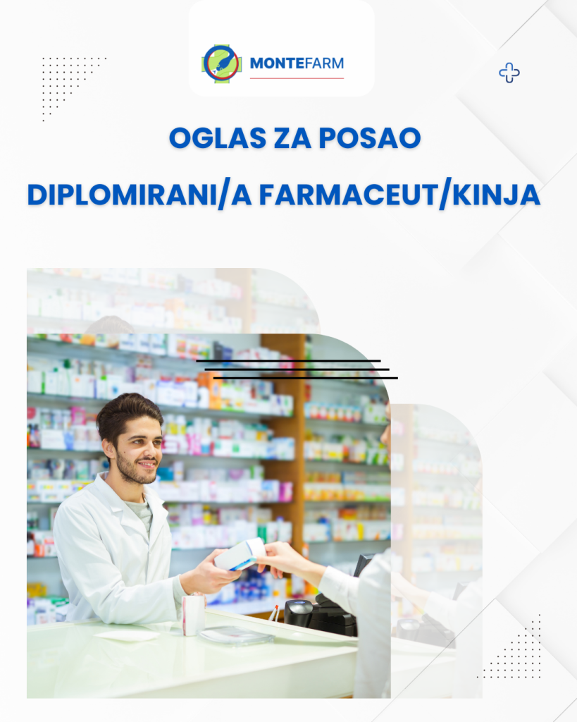 Апотека “Толоши”, Подгорица - радно мјесто дипломирани фармацеут/киња.