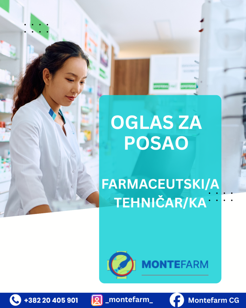 Апотека “Морача”, Подгорица - радно мјесто ФАРМАЦЕУТСКИ/А ТЕХНИЧАР/КА